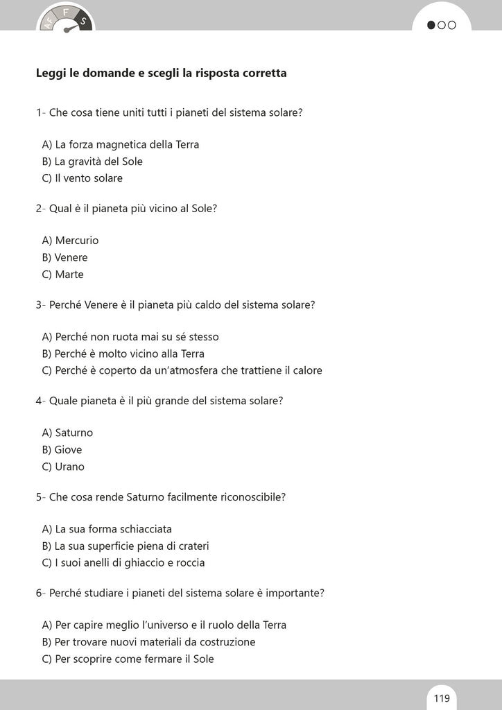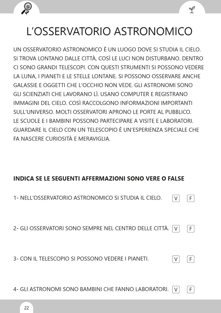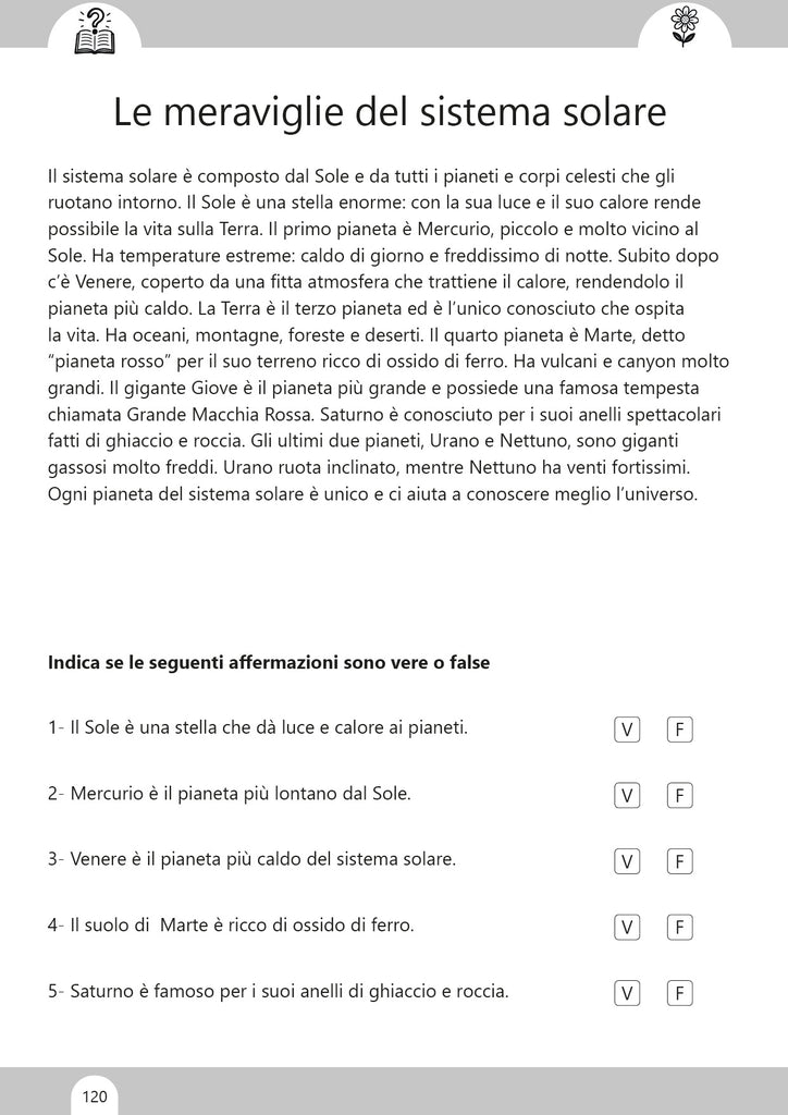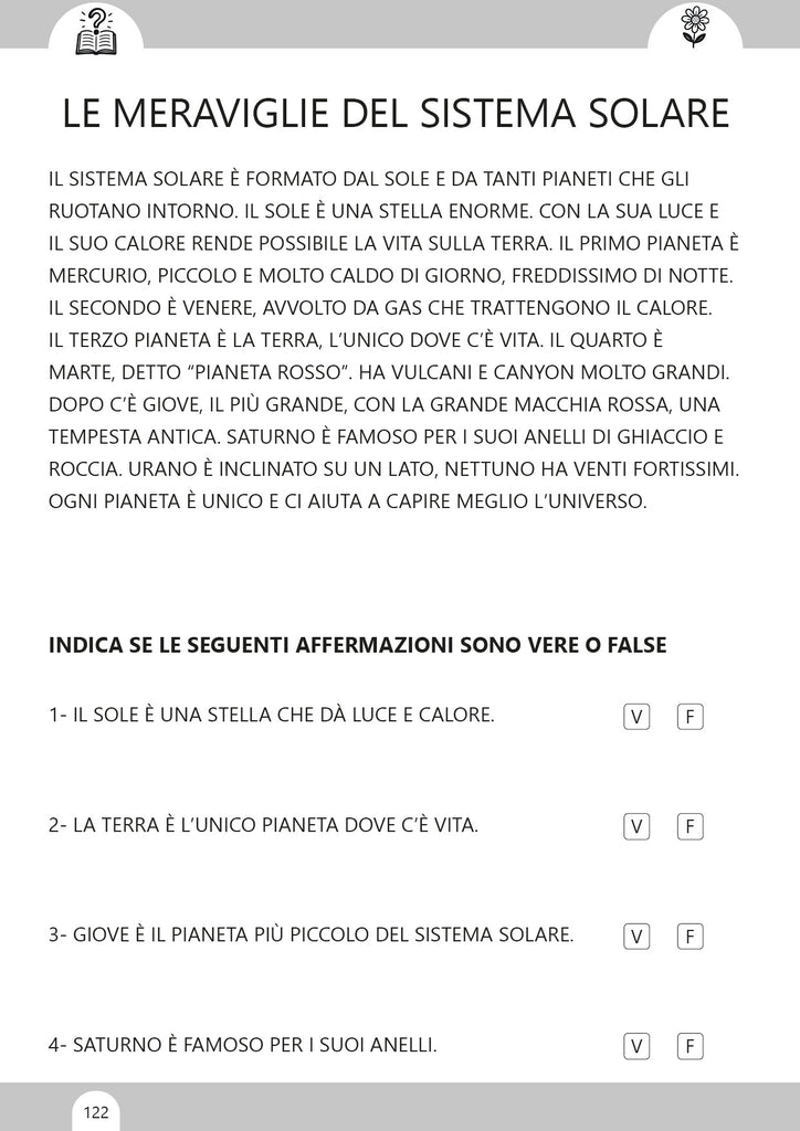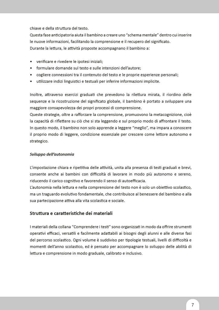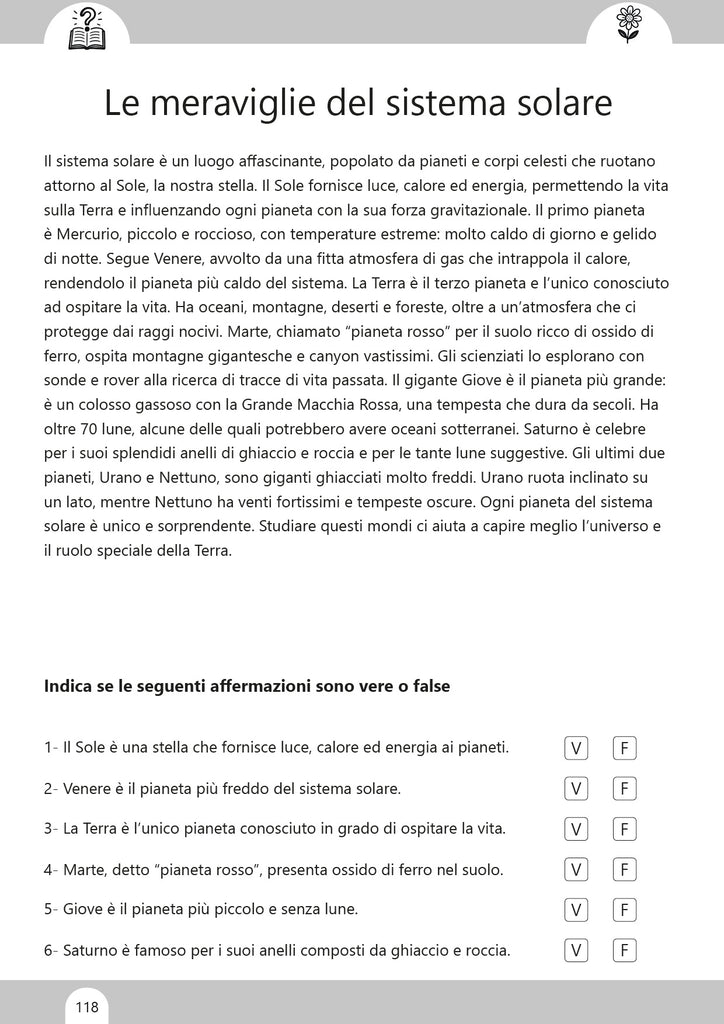 In questo volume, pensato per la fascia 8–9 anni, i testi diventano progressivamente più complessi, offrendo una maggiore densità informativa e contenuti che richiedono riflessione e capacità di riorganizzare le informazioni. Le attività favoriscono la comprensione a più livelli e accompagnano il bambino verso una lettura sempre più autonoma e critica.